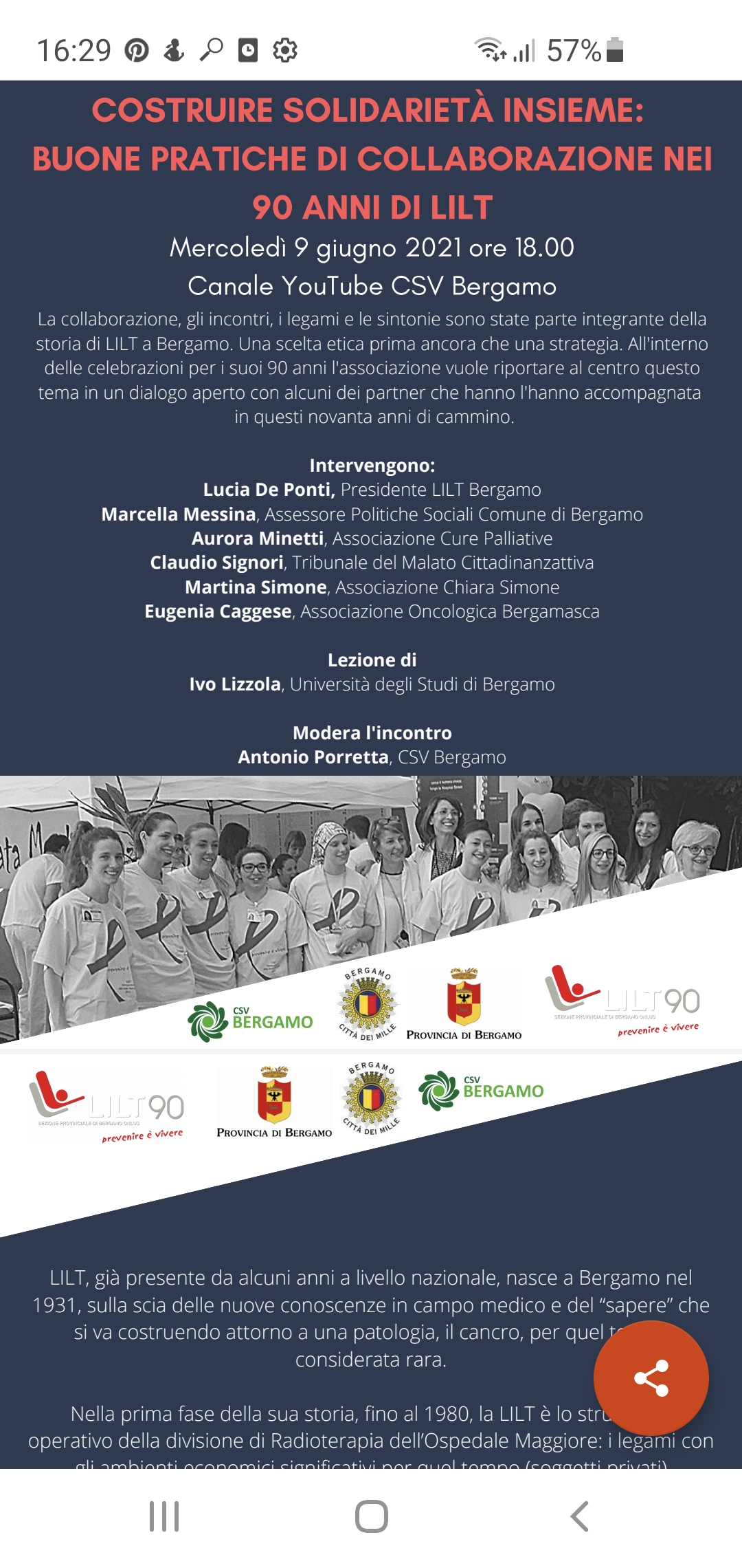 …un’altra occasione per parlare del nostro passato e per progettare con CSV, l’Assessore Marcella Messina, il prof. Ivo Lizzola e le altre Associazioni il futuro del 3° settore!