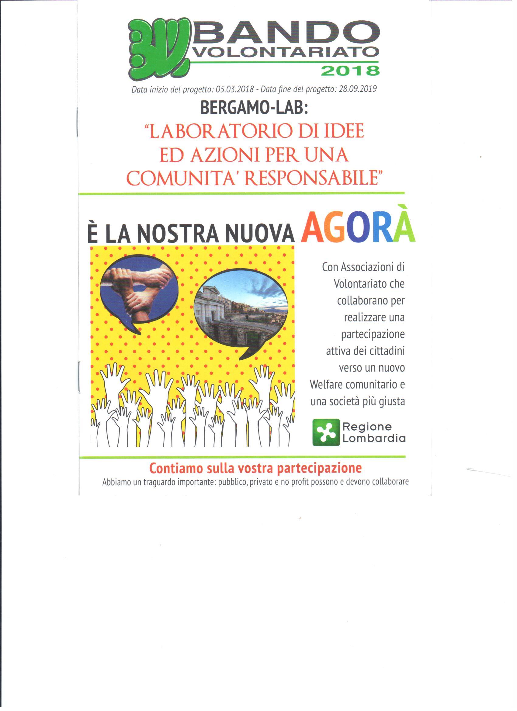 Anche nel 2019 si svilupperà il progetto ” AGORA’ LABORATORIO DI IDEE ED AZIONI PER UNA COMUNITA’ RESPONSABILE ” che vede coinvolte le associazioni Cure Palliative, LILT onlus, Chiara Simone onlus, Patronato San Vincenzo, Azienda Bergamasca Formazione e l’ufficio Scolastico Provinciale. Numerose saranno le iniziative proposte alle scuole e al pubblico: