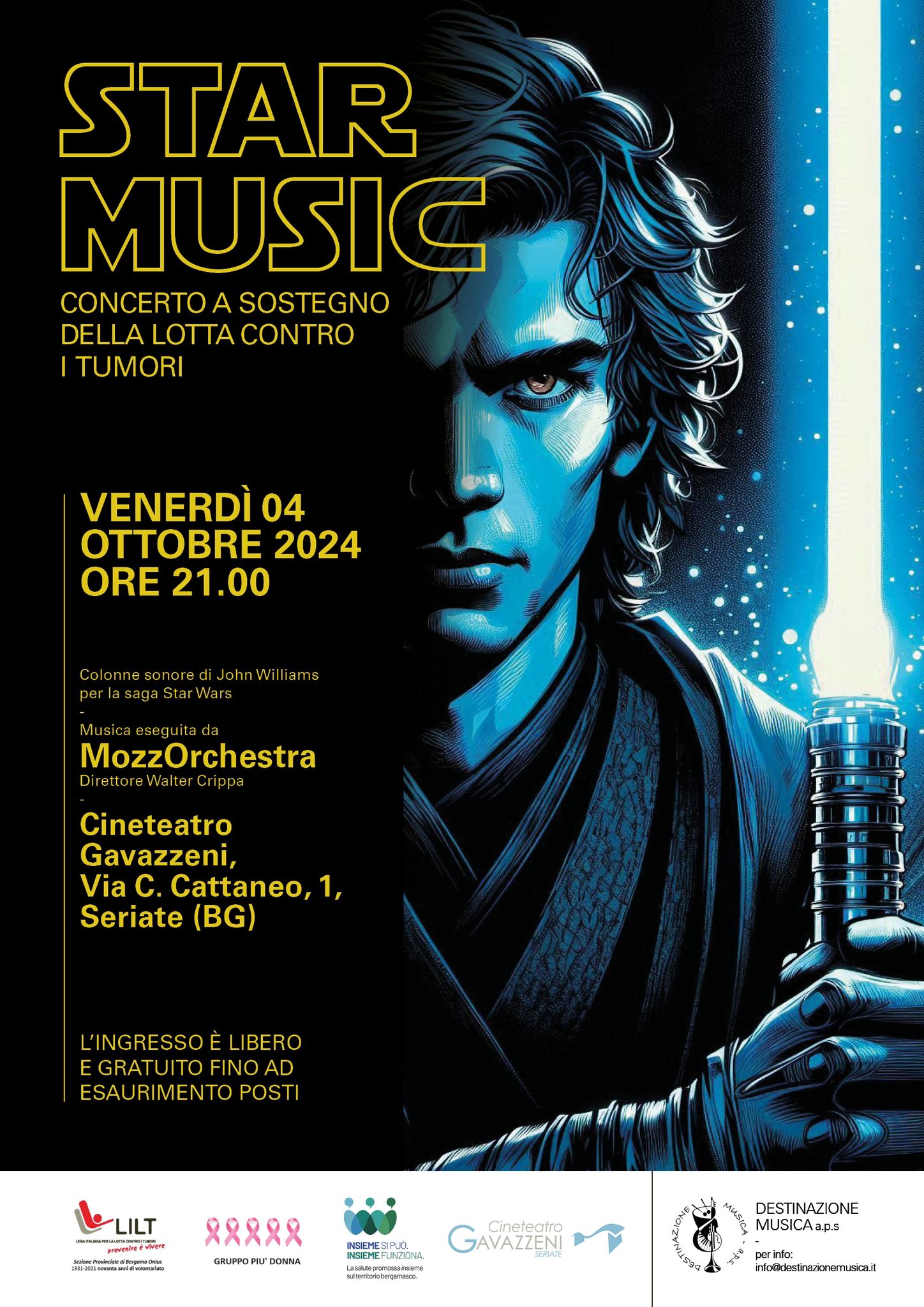 - 4/10 Concerto al teatro Gavazzeni di Seriate con MozzOrchestra e le musiche di Star Wars con le volontarie LILT di “Più Donna”. Ingresso gratuito